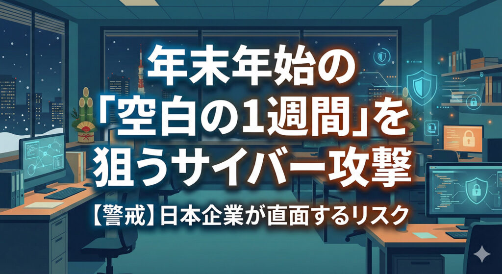 多くの日本企業が「御用納め」を終え、オフィスが静まり返る年末年始。しかし、セキュリティ担当者にとっては、一年で最も気の抜けない「防衛戦」の始まりとなります。 なぜ「連休」が狙われるのか サイバー攻撃者は、防御側が手薄になる瞬間を執拗に狙っ... -
