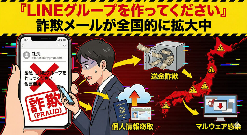 『LINEグループを作ってください』詐欺メールが全国的に拡大中