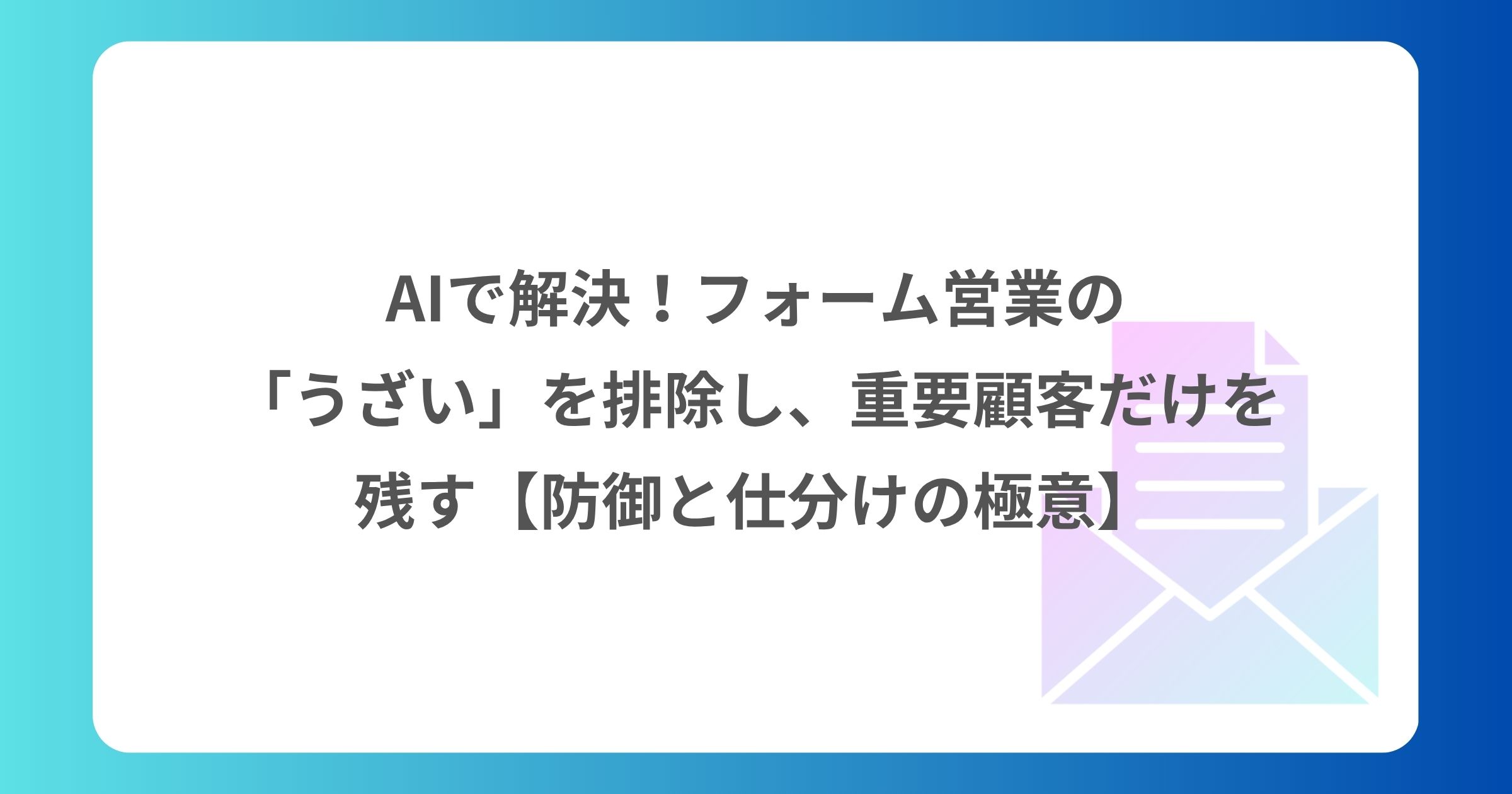 AIで解決!フォーム営業の「うざい」を排除し、重要顧客だけを残す【防御と仕分けの極意】